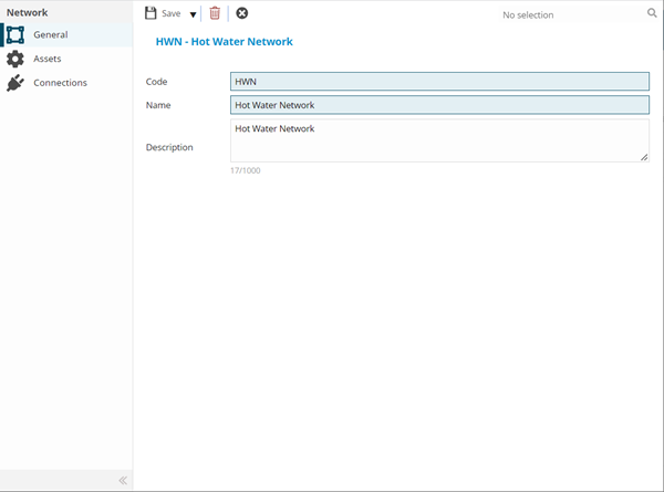 . Once the Asset Network header has been completed and saved a sub navigation will appear to allow additional entities to be assigned and viewed.