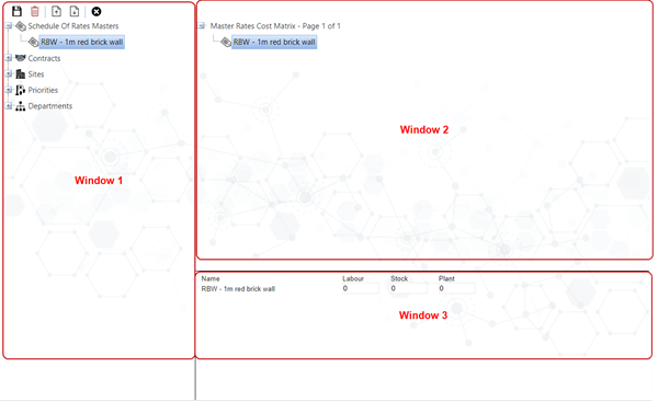 Below the Matrix tree is the Master Rates Costs pane. Selecting a value in the Master Rates Cost Matrix will display an entry box for that node and those immediately below it.