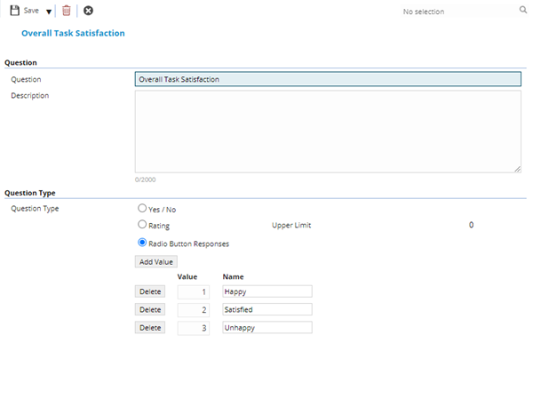 Customer Satisfaction uses questions to create templates, these templates can then be attached to either a Task or Purchase Order to allow customer feedback to be recorded within MRI Evolution.