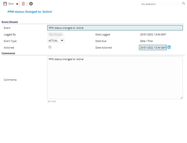 Once Event Types have been created they can be attached to the relevant entities.