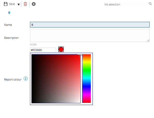Set a colour that will be used to highlight Audits and Audited Items that achieve this Grade in the Scorecard Reports. Enter an RGB colour code or use the colour picker to set the desired colour. |