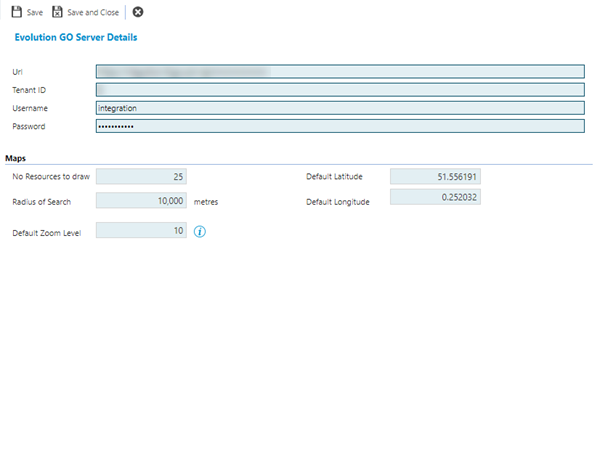 The link will open a pop up window which will allow the creation or amendment of the Evolution Go Server Details.