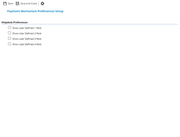 The Payment Mechanism Preferences allow up to four User defined fields to be made visible on the Advanced Helpdesk, if required.