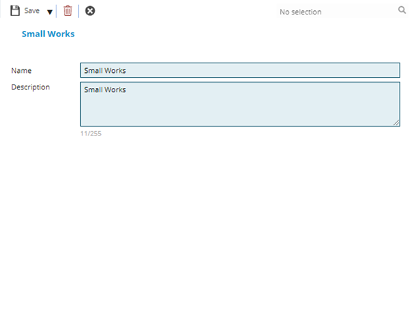 Projects can be grouped by categories, these could reflect the general reason for the work e.g. small works or renovations.