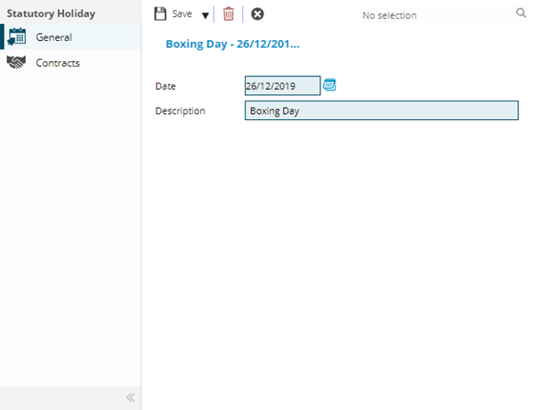Contracts can be linked to Statutory Holidays to indicate unavailability.