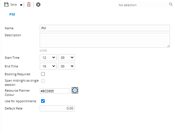 . A pop up window will appear which will allow the creation or amendment of a Calendar Session.