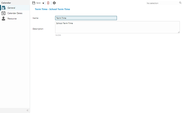 . Once the Calendar header has been completed and saved a sub navigation will appear to allow additional entities to be assigned.
