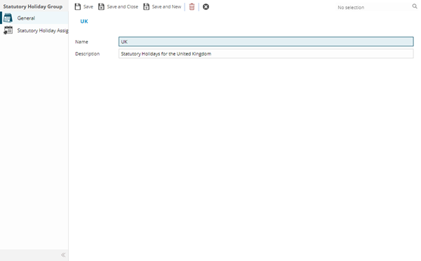 Once Statutory Holiday Groups have been created, Statutory Holidays can be assigned to the Group.
