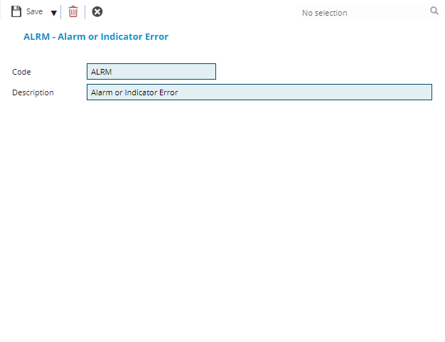 . A pop up window will appear which will allow the creation or amendment of a Fault Code.