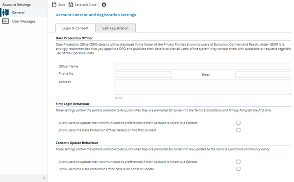 Note: From 4.8.0.0 Self Registration settings were moved from System Administration > General Preferences to Settings > User Accounts > Account Consent & Registration Settings