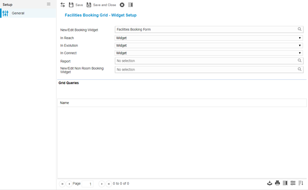 Select the Widget template : Facility Booking Grid. Complete the fields and click Save