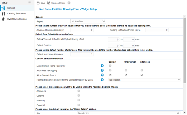 Select the Widget template : Non Room Facility Booking Form. Complete the fields and click Save