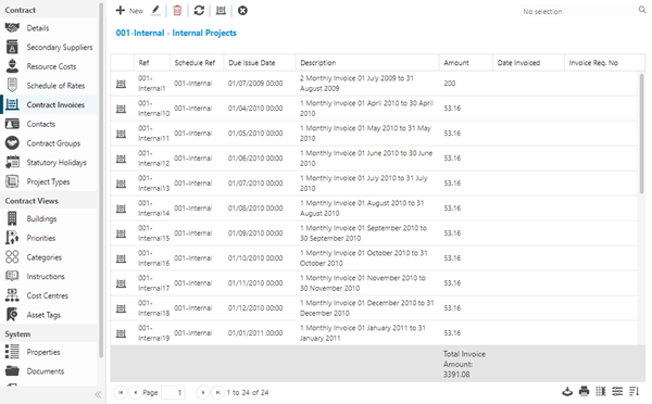 The link will open the Contract / Contract Invoice grid. It is a grid view which can be searched, sorted and customised as normal.
