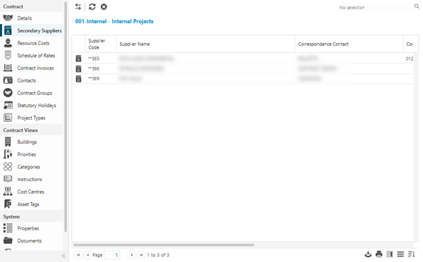 The link will open the Contract / Secondary Suppliers grid. It is a grid view that can be customised and sorted as normal.