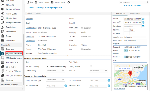 The Payment Mechanism sub navigation on the Advanced Helpdesk allows a User to see some auto-populated information about PMS and apply unavailability, PMS LoC's, User Defined fields and Temporary Accommodation.