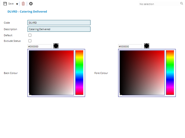 Catering Status Management allows a colour set to be created to allow Catering items to be colour coded according to there status in the Catering management grid.
