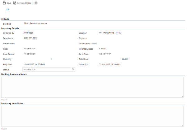 If the Inventory Item has been added from a Facility Booking it will be viewable from the grid.