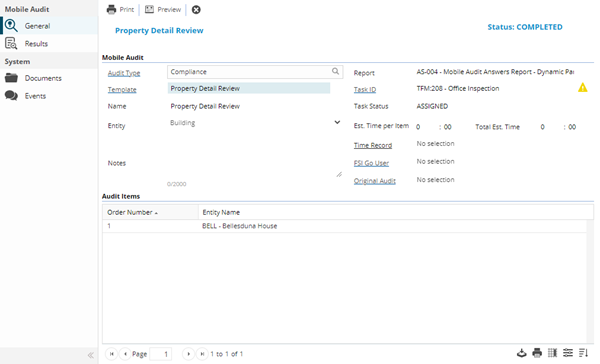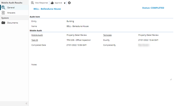 | Notes | A read only field to display any notes related to the Mobile Audit. |