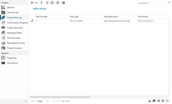 The link will open the Project Risk Log grid. It is a grid view which can be searched, sorted and customised as normal.