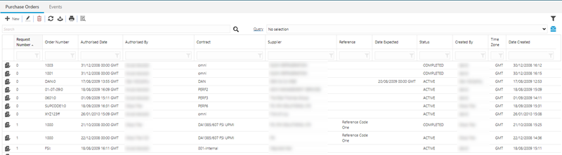The link will open the Purchase Orders grid. It is a grid view which can be searched, sorted and customised as normal.