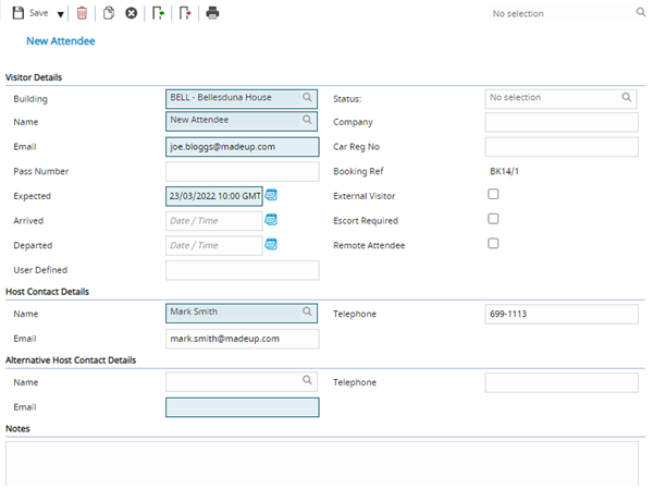 If the Visitor has been added via a room booking, the following fields may be auto-populated: Building, Name, Email, Expected and Host Name.