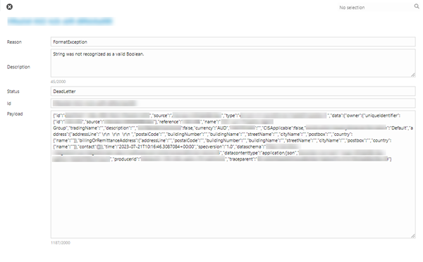 Note: It is very important that users do not action Agora Dead Letter records without guidance from MRI staff. An existing Event Hub integration will be endangered by users making changes without the required information.