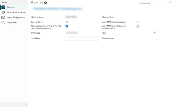 The initial server screen will be set up by MRI Software on installation, the screen displays read only information relating to the web server where MRI Evolution is installed.