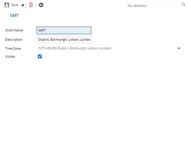 . A pop up window will appear which will allow the creation or amendment of a Time Zone.