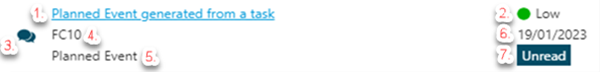 There are unread Messages for the current user of different priorities, the circle colour shown will be for the highest priority unread Message(s) and the number in the coloured circle shows the number of unread Messages with a status associated with the circle colour. The circle colours relate to the following Message priorities: